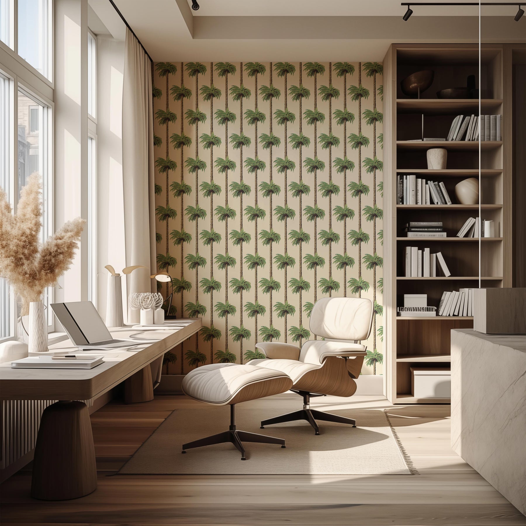 9. Retro Tiki Palm Trees – Linen Wallpaper
