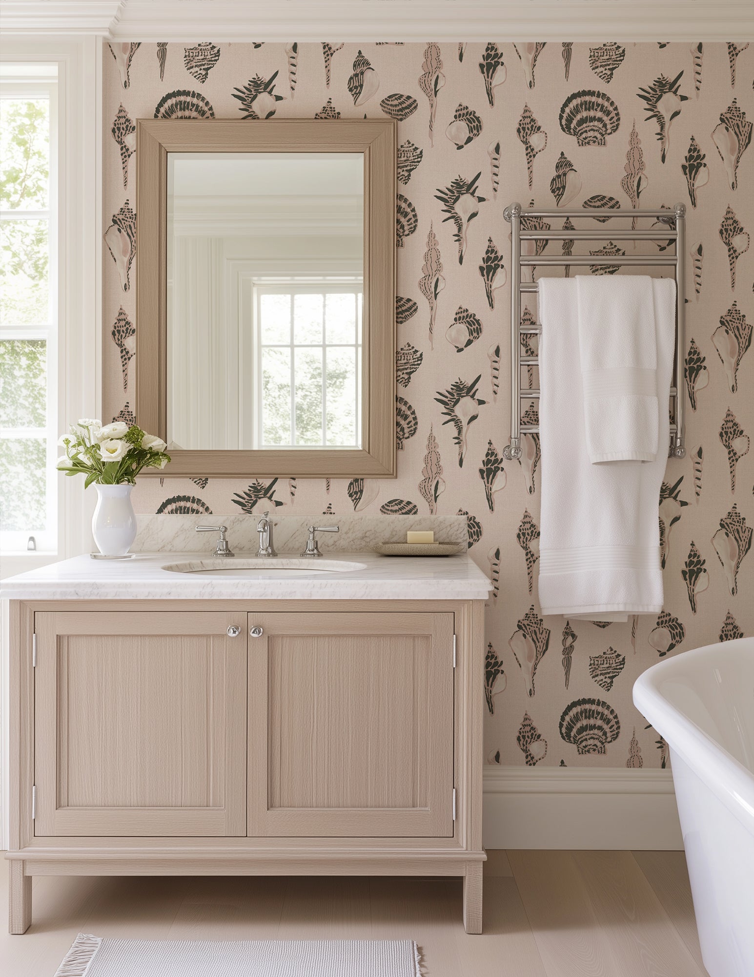 Balance With Soft Neutrals - Ocean tones work best when paired with whites, sandy beiges, or lightly washed pastels. These neutral surfaces let your wallpaper darling stand out and maintain softness at the same time.