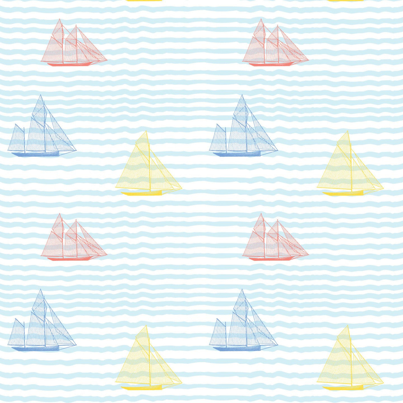 Simple, sweet, and timeless - this coastal nursery wallpaper showcases sailboats that sail across wave patterns. The linear simplicity keeps things serene, and the nautical theme feels effortlessly timeless.