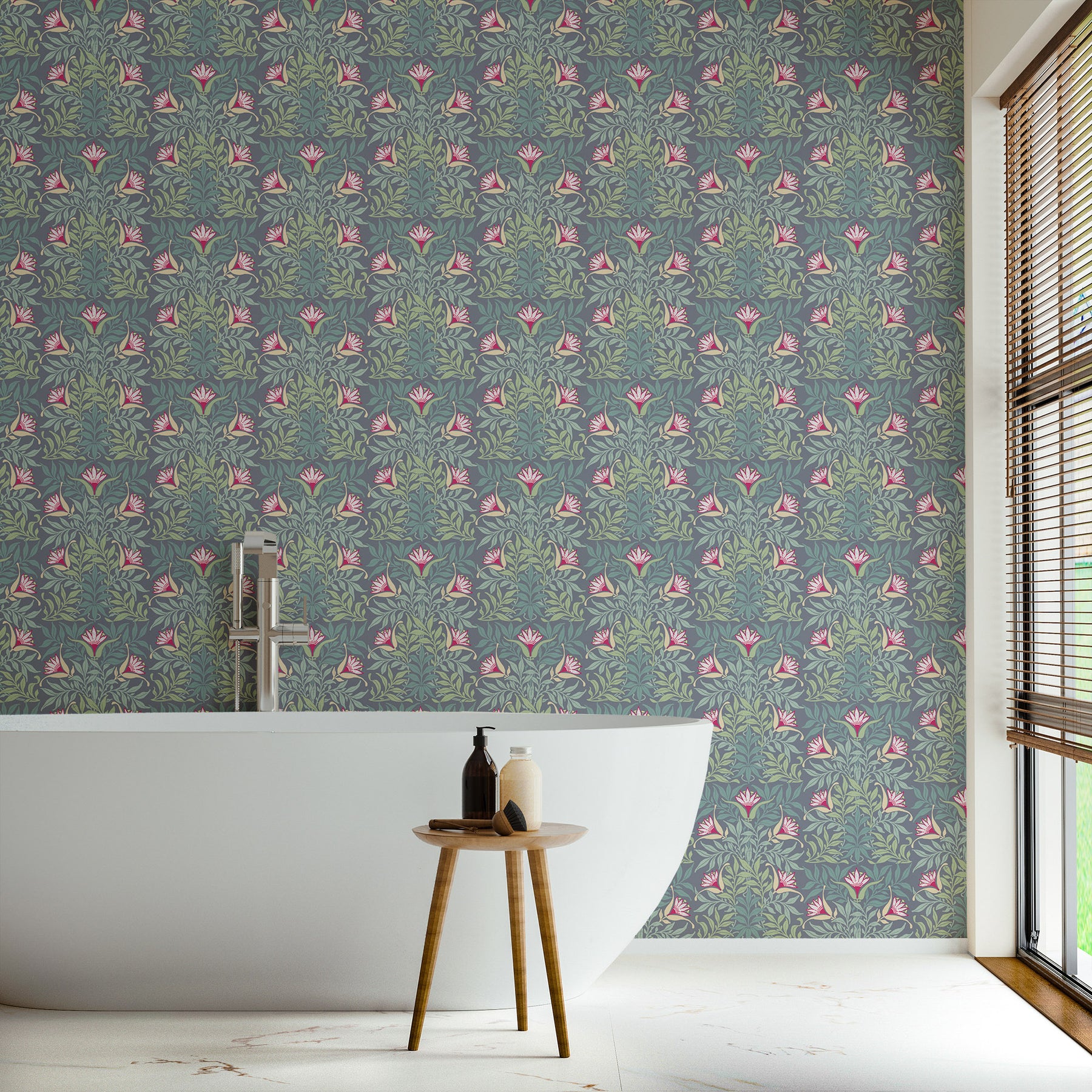 Our Wisteria - Blue Floral Wallpaper is perfect for anyone with a sense of adventure who appreciates the finer things in life. It is quite bold with its patterns and draws inspiration from historic Asian, North African, and Austrian tiles and textiles. If you want the true sense of coziness in your home, this is the shabby chic wallpaper you need!Â