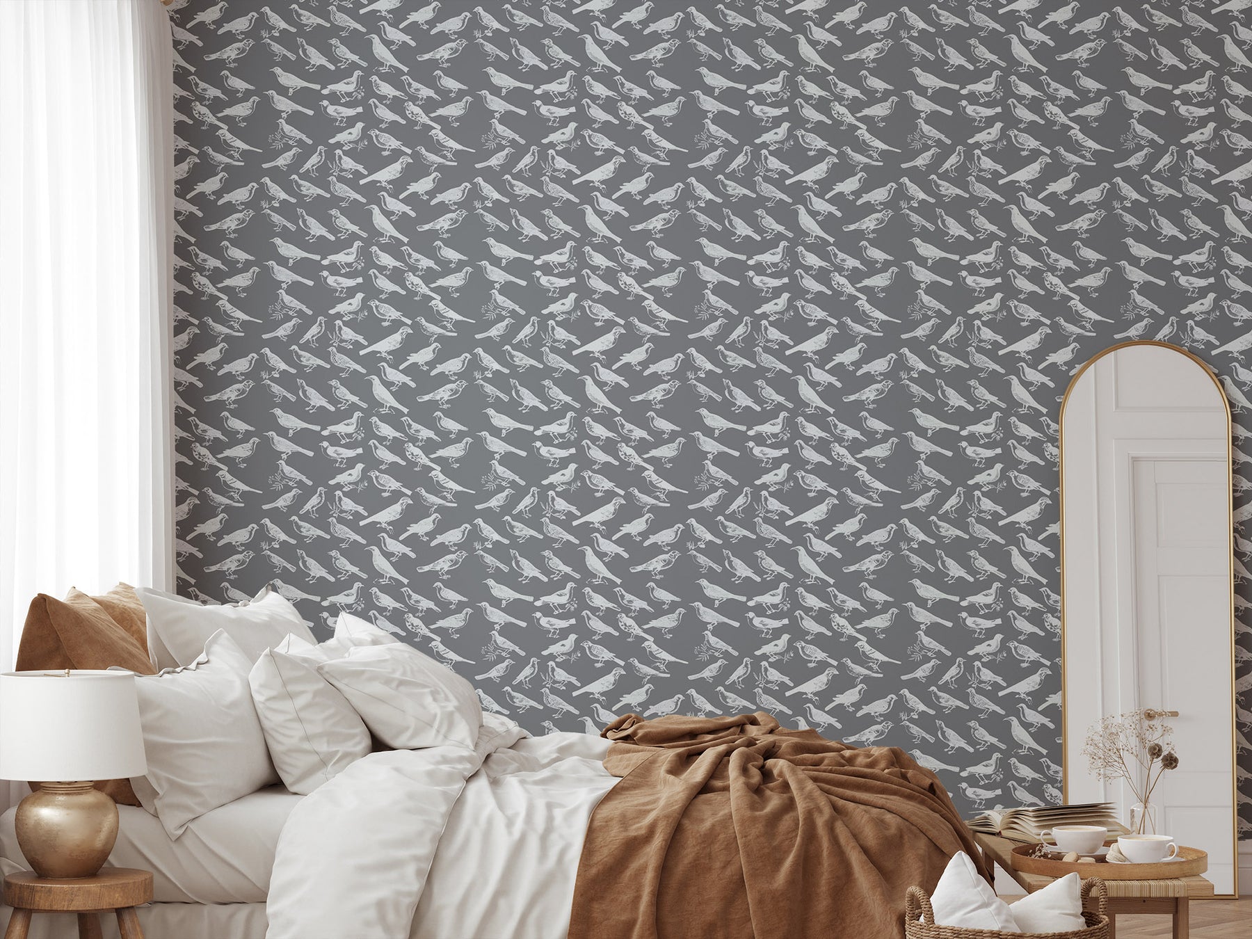 Our Tweeter - Gray Wallpaper is ideal to achieve this effect in your home. It comes with a deep gray color, and it is accompanied by birds, which enhance the shabby chic style. If you are looking for a combination of chic and classy, you should consider this wallpaper design. You will not regret it!