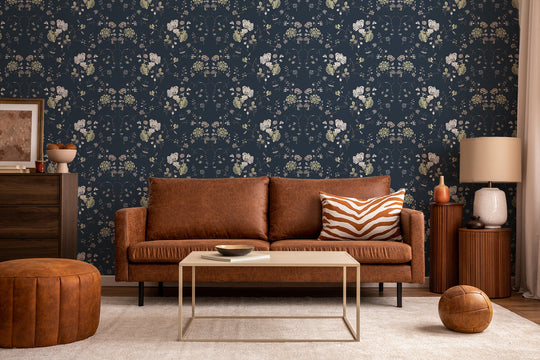 Lighter colors, especially neutrals and pastels, tend to reflect natural light coming from windows. This can help infuse a bright and positive vibe into your space. The lotus dusty blue floral wallpaper can brighten up your space while adding a fun and dynamic element to your interior design.