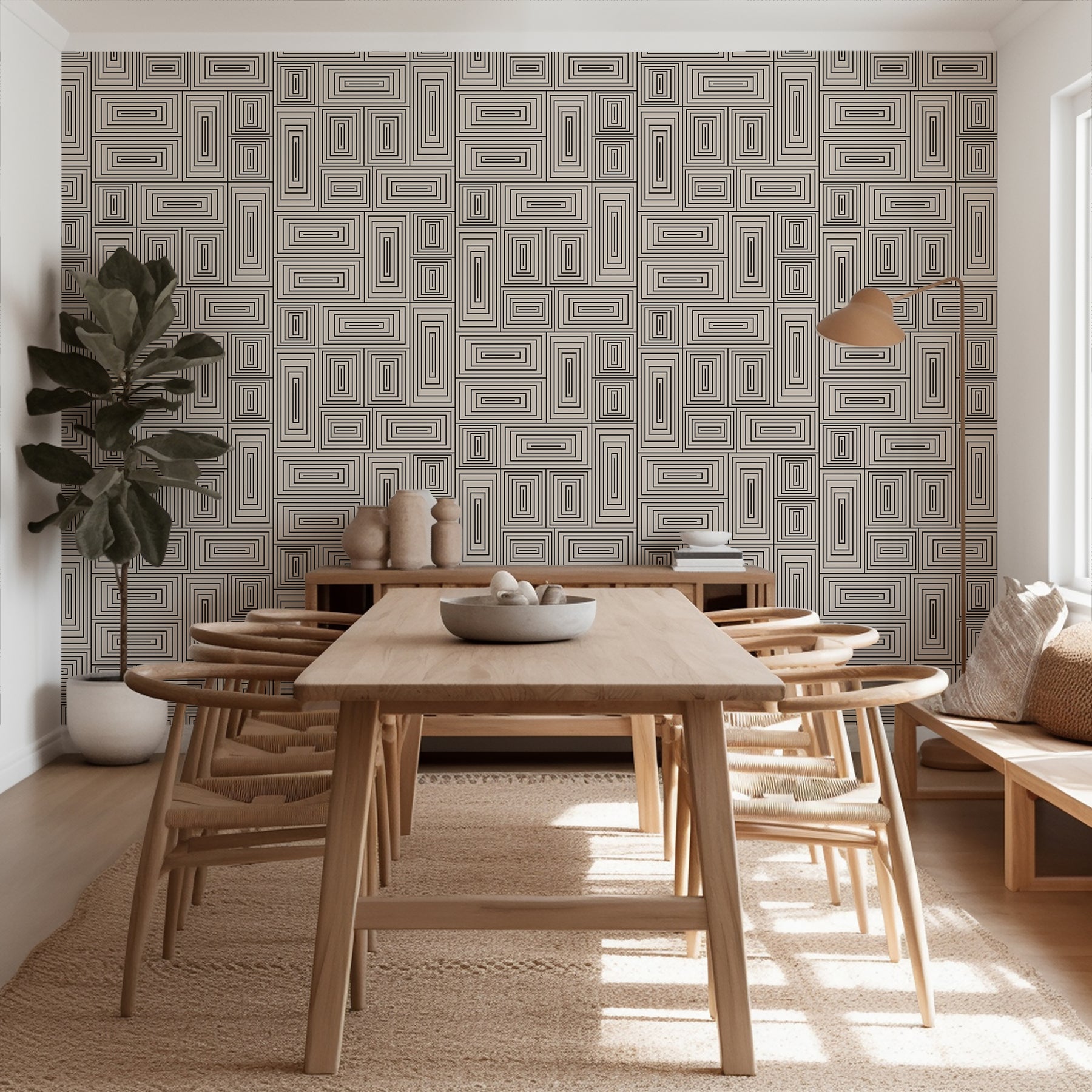 Our recommendation here is the Nia – Taupe Geometric Wallpaper by Forbes Masters.