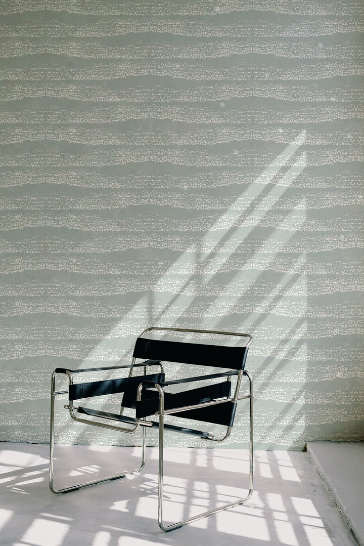 Reflections is a simple but bold wallpaper pattern that captures the essence of falling water with its overlapping marks. The design features a series of repeating shapes that mimic the striped abstracted forms of gusts of rain, creating a mesmerizing visual effect.The zig zag lines and speckled shapes of the pattern give it a lively and refined look, while the deep and neutral color palette adds depth and richness to the design. This wallpaper is perfect for those who want to add a touch of melodrama to their space while also bringing a sense of tranquility and relaxation.