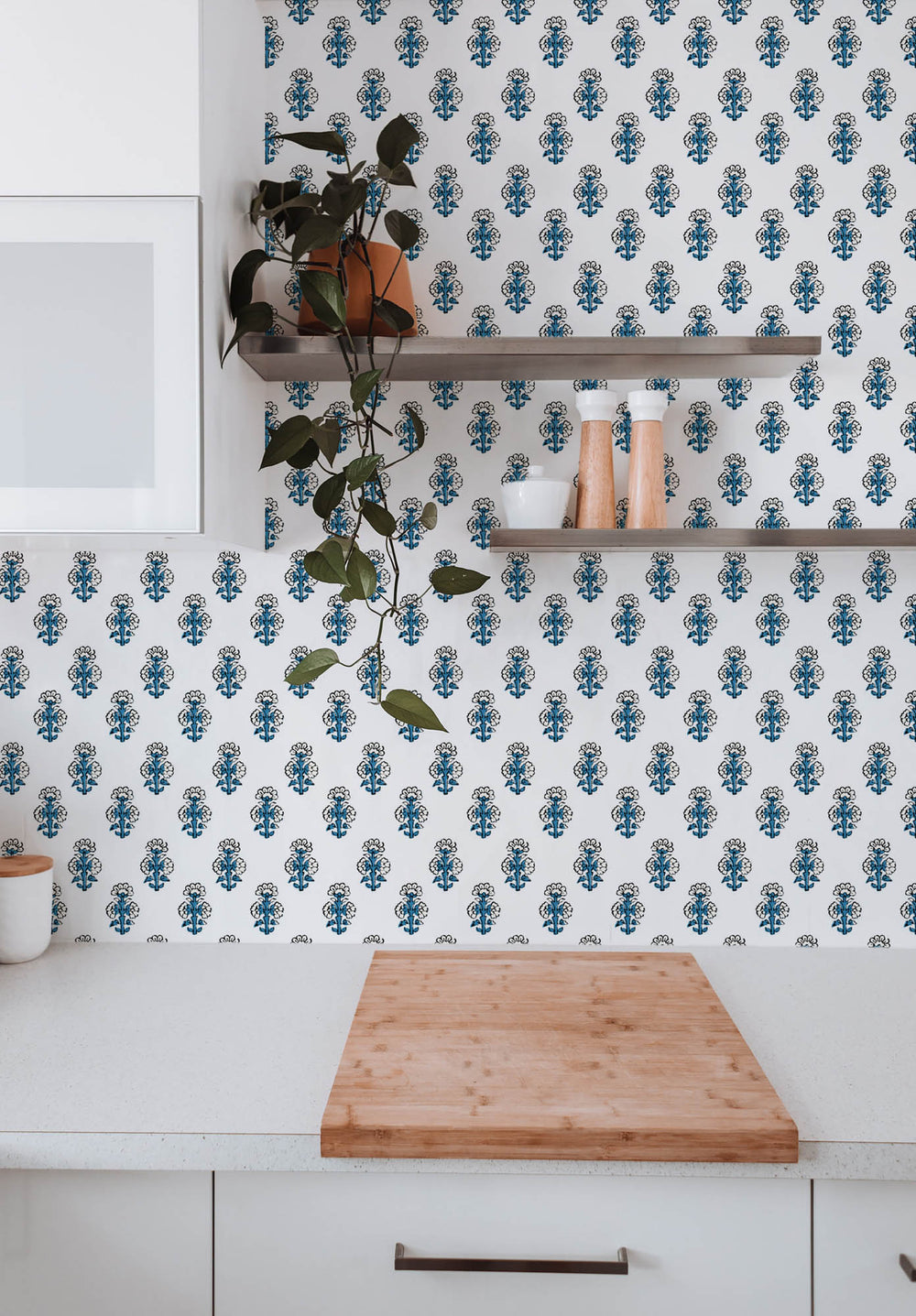 Talelayo - Blue and Black Floral Wallpaper by August Table