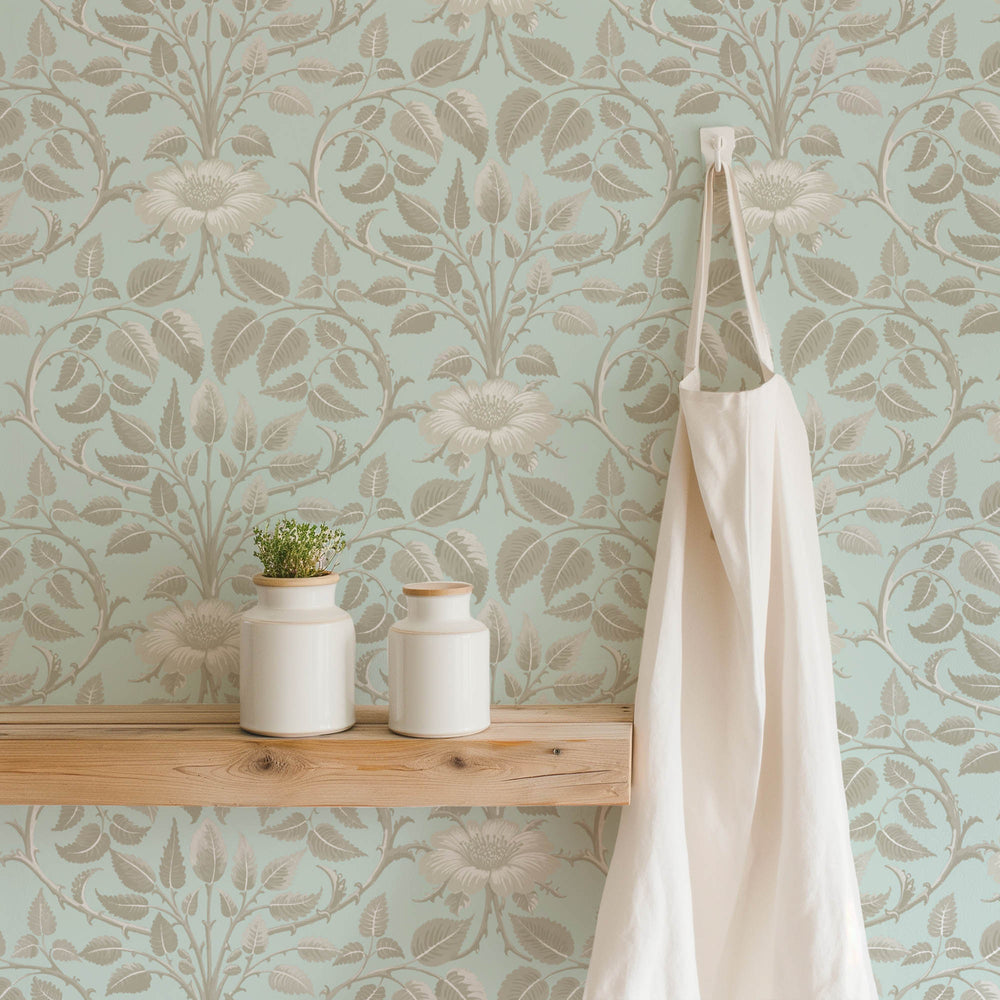 Garden Vine - Alabaster Blue Botanical Wallpaper