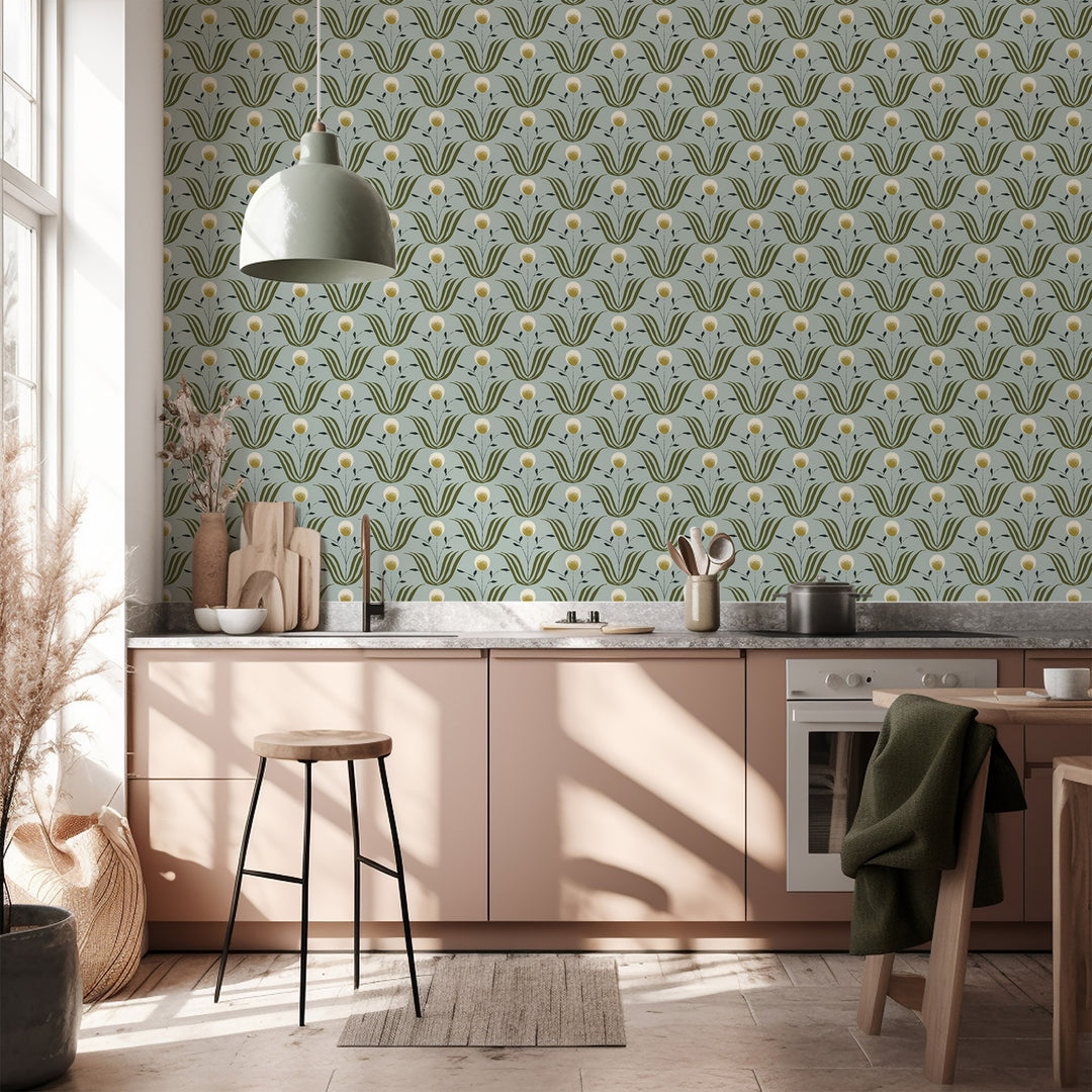 Spring Bloom - Ash Blue Floral Wallpaper