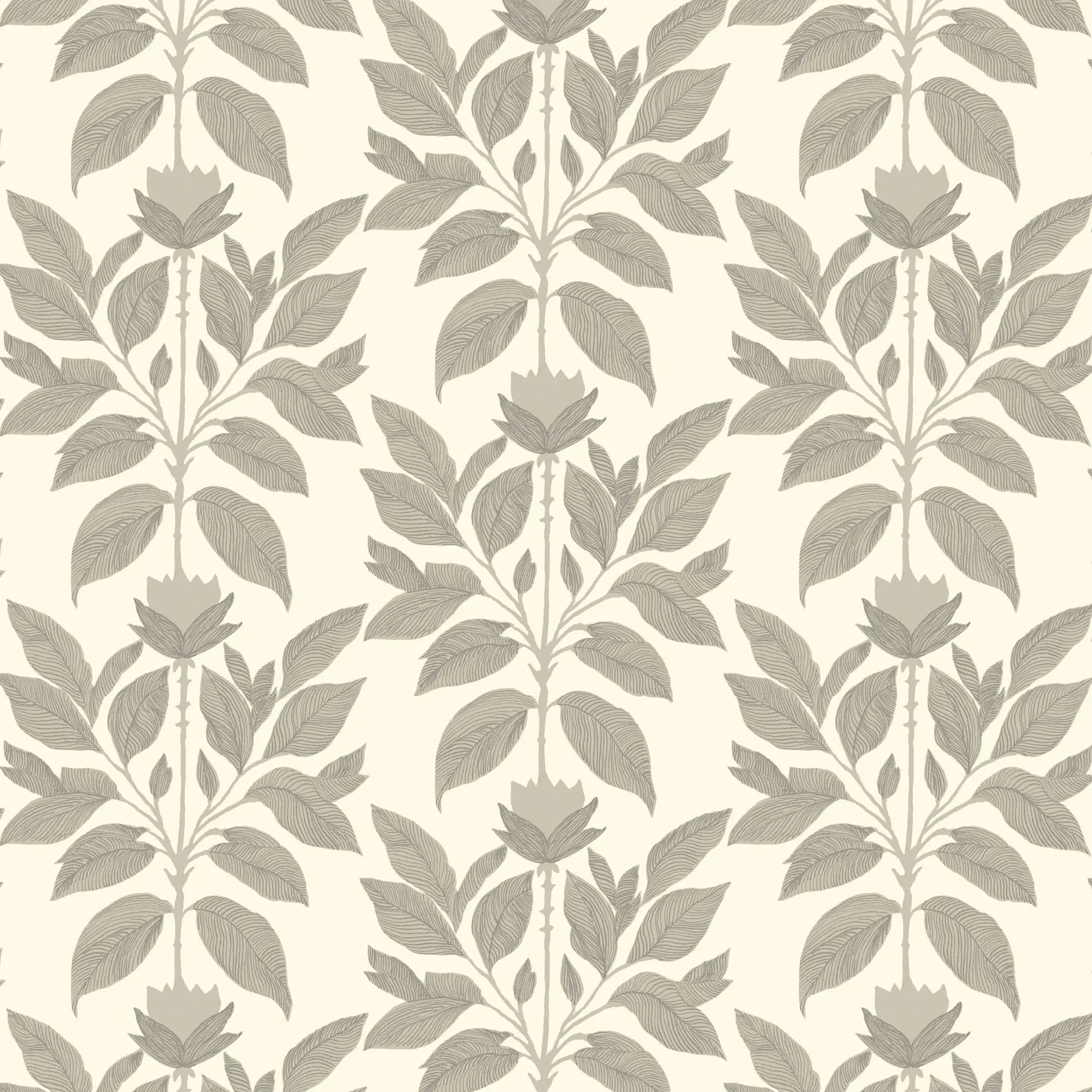 Wayward Petal combines a hand-sketched and painted aesthetic with a bold vertical arrangement of leaves and blossoms. The detailed botanical pattern offers a unique, handcrafted charm that draws attention.