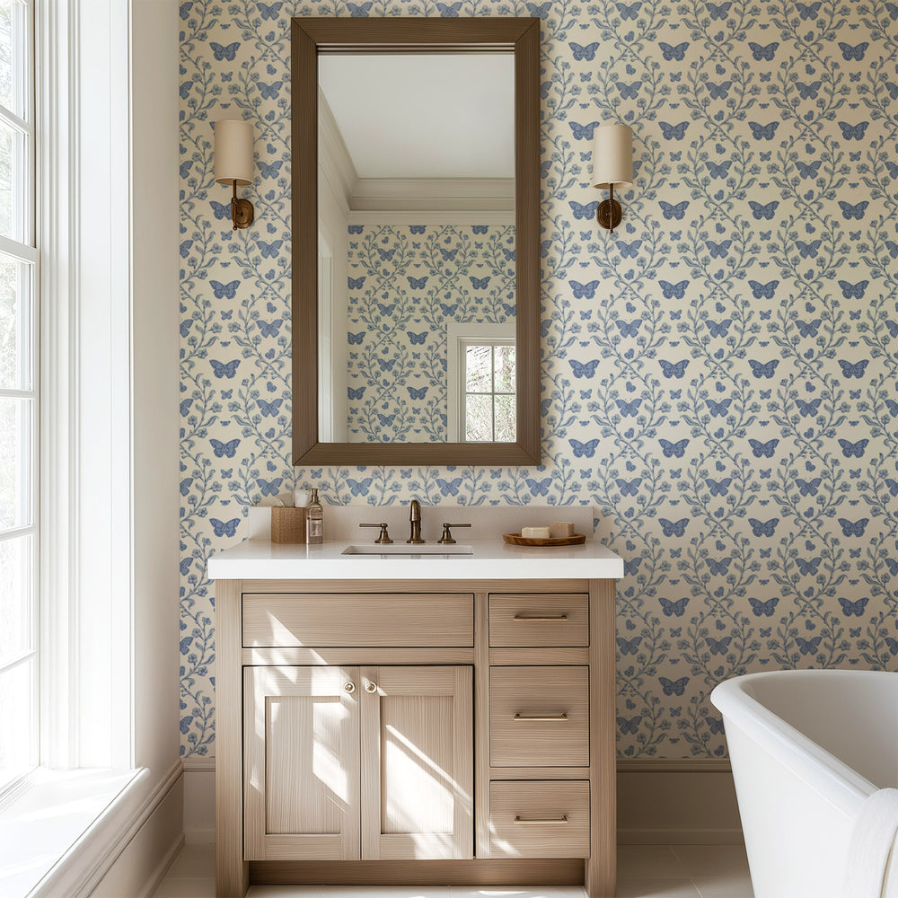 - Creative spaces: Add a feminine touch to a home office or hobby room with a soft blue butterfly wallpaper.