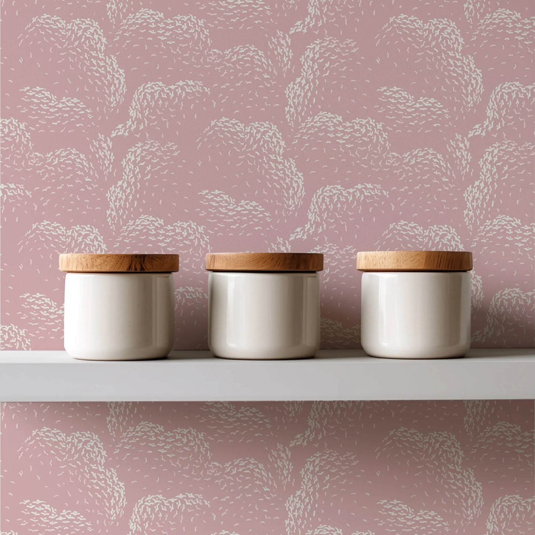 Clouds is an abstract wallpaper pattern that is inspired by the iconic design style of the mid-20th century. The repeating design features bursts of marks and patterns that are reminiscent of clouds, creating a dynamic and visually striking look. The neutral color palette is punctuated by pops of color. Whether you're looking to add a touch of midcentury flair to your home or simply want to make a statement with your wallpaper choice, Flock is the perfect choice.