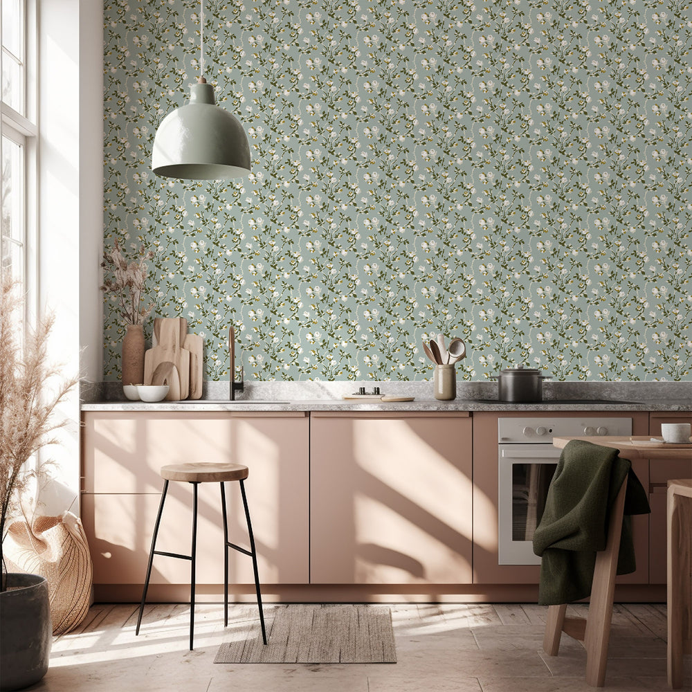 Country wallpaper features traditional motifs like gingham, plaids, florals, and rustic textures in soft, muted palettes. Think farmhouse kitchens, cozy cottages, and vintage-inspired charm.