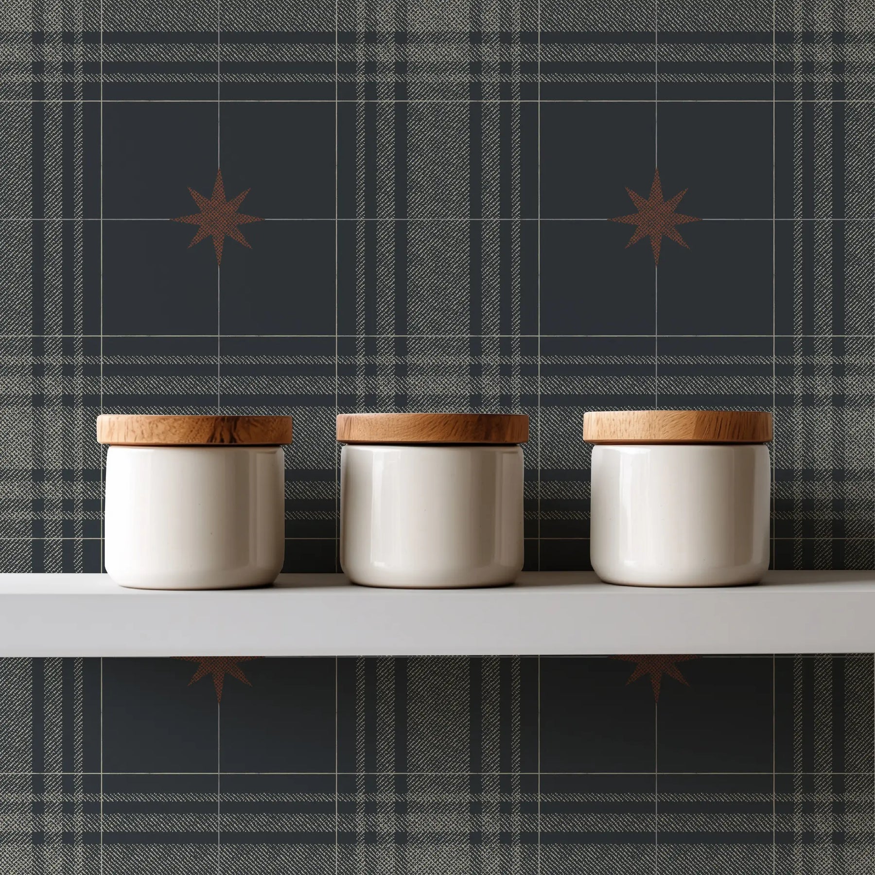 Nautical-inspired plaid with subtle maritime motifs. Gradated design blends classic structure with playful detail.
