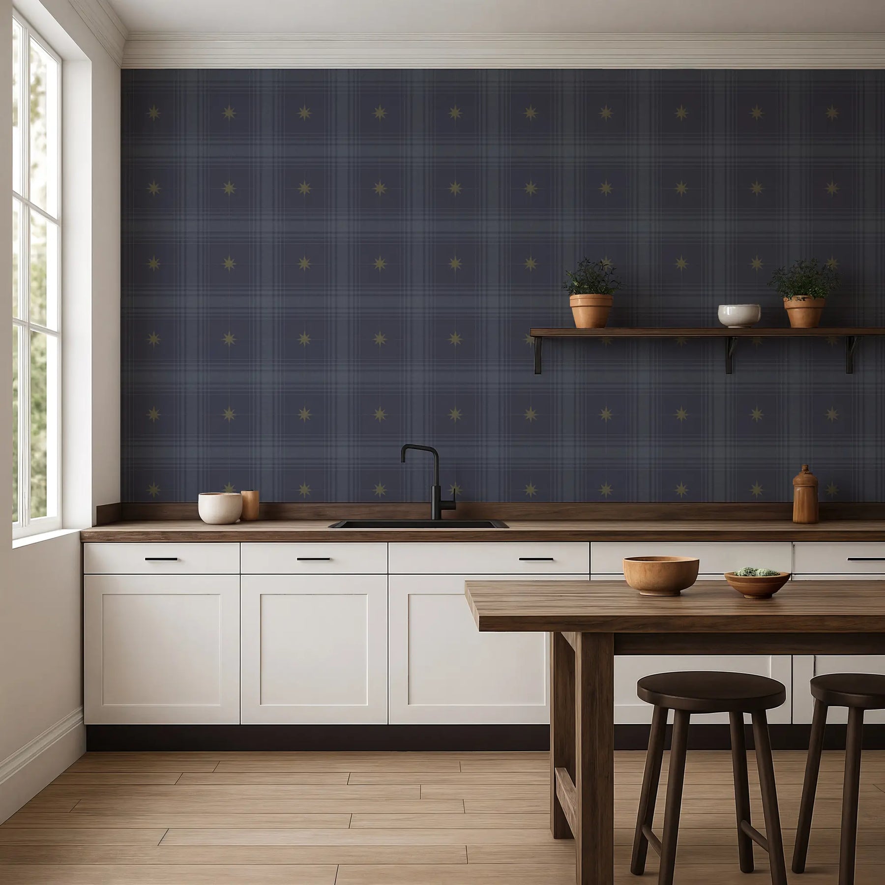 Nautical-inspired plaid with subtle maritime motifs. Gradated design blends classic structure with playful detail.