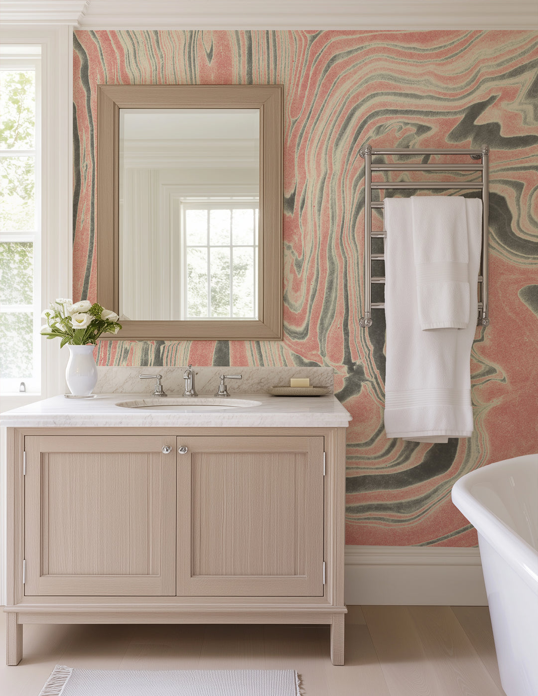 Marbled wallpaper brings the dreamy, natural beauty of marble right into your living spaces. It blends classic stone elegance with the versatility and creative freedom of wallpaper. Each stunning design mimics the intricate patterning and vibrant swirls found in real marble, creating an immersive vibe that will elevate any room to new heights.