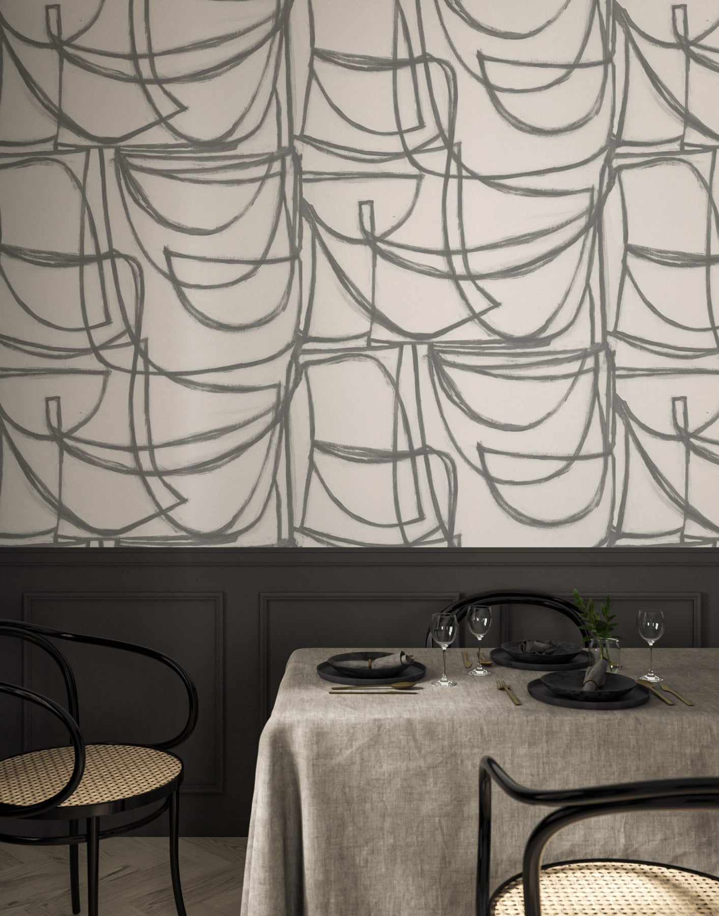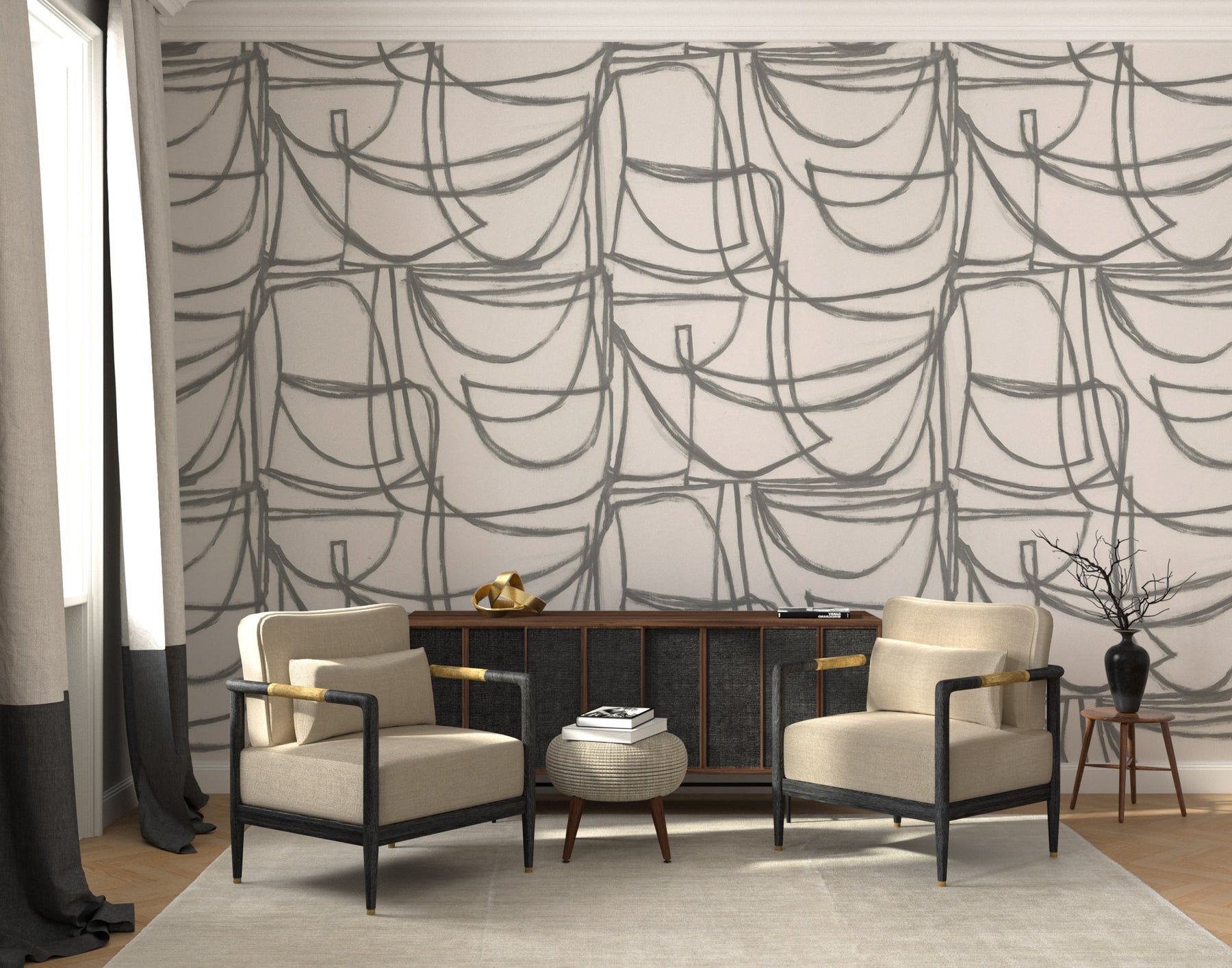 Featuring sweeping curvilinear charcoal-like strokes, 'Limitless' evokes both movement and structure, creating a rhythmic space that feels spontaneous yet intentional. Its dynamic lines bring energy and sophistication to modern interiors, making it ideal for spaces that celebrate creativity and flow.