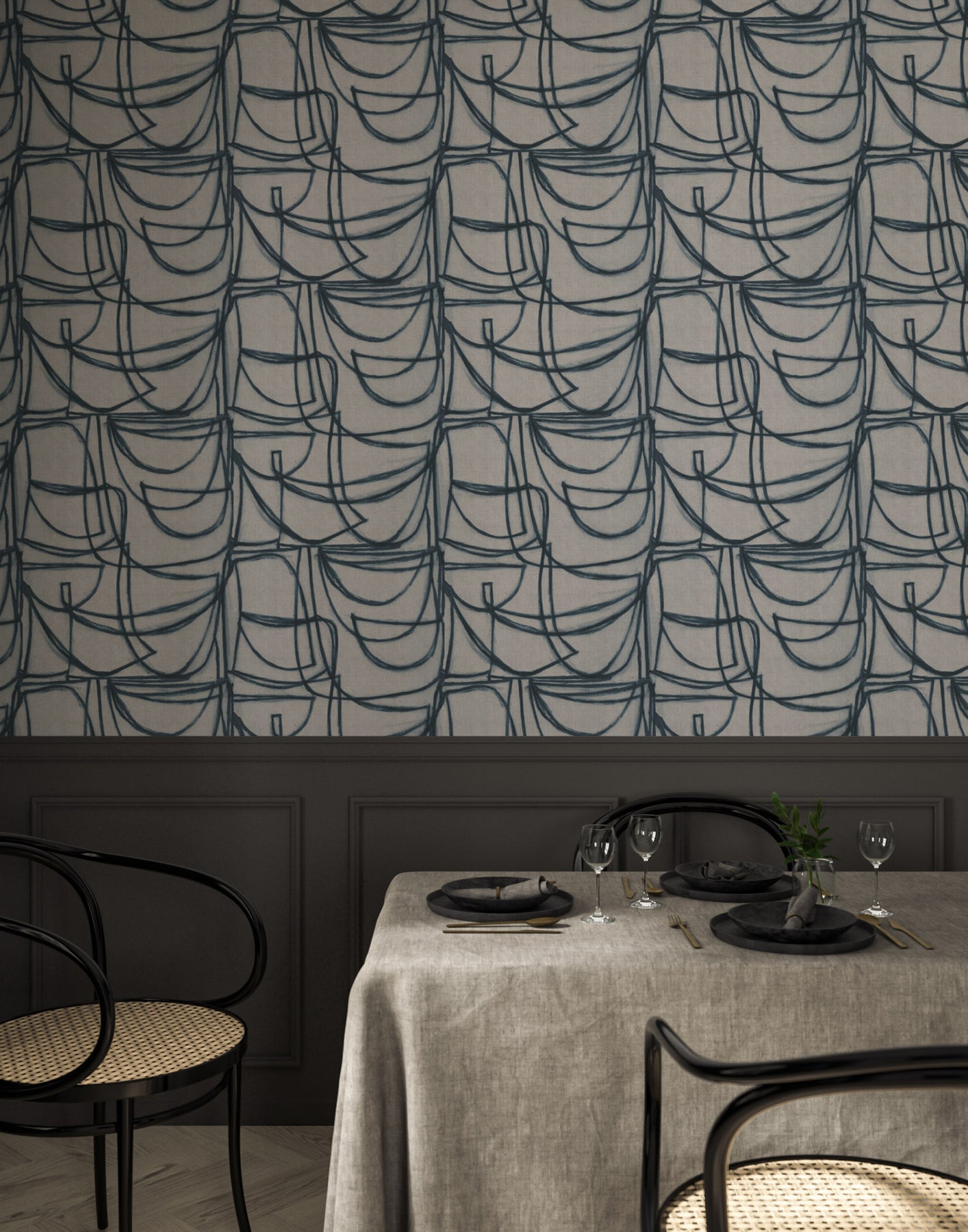 Featuring sweeping curvilinear charcoal-like strokes, 'Limitless' evokes both movement and structure, creating a rhythmic space that feels spontaneous yet intentional. Its dynamic lines bring energy and sophistication to modern interiors, making it ideal for spaces that celebrate creativity and flow.