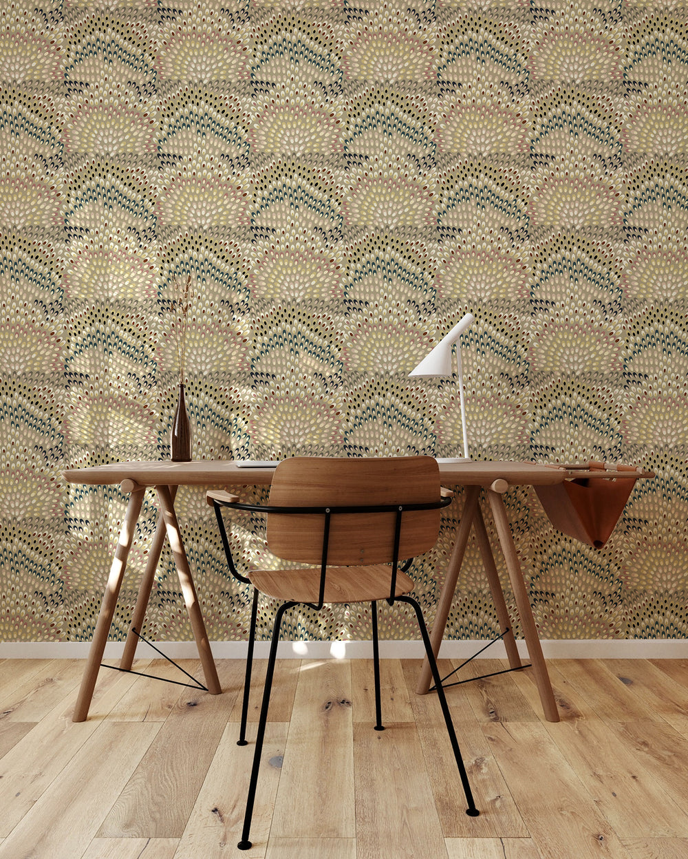 Jandaya is a vibrant and bold wallpaper pattern that features repeating columns of tropical bird-like markings. The colorful design is inspired by the lush and exotic life of the tropics, bringing a touch of color to any space. The intricate patterning is a feast for the eyes, with each roll offering a new and mesmerizing display of color and form. Whether you're looking to add a wild touch to your home or simply want to make a statement with your wallpaper choice, Jandaya is the perfect choice for those who want to live and work in color.