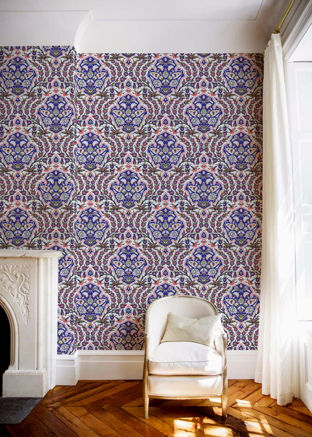 Ottoman Large - Blues & Coral Wallpaper
