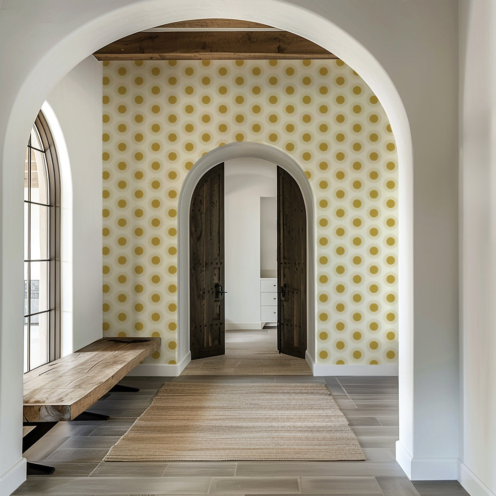 Sunburst enhances the aesthetics of any room by merging elemental simplicity with traditional design elements. Comprised of clean circles offset by slender, radiating lines, this wallpaper goes beyond basic decor to capture the quintessential spirit of solar motifs.
