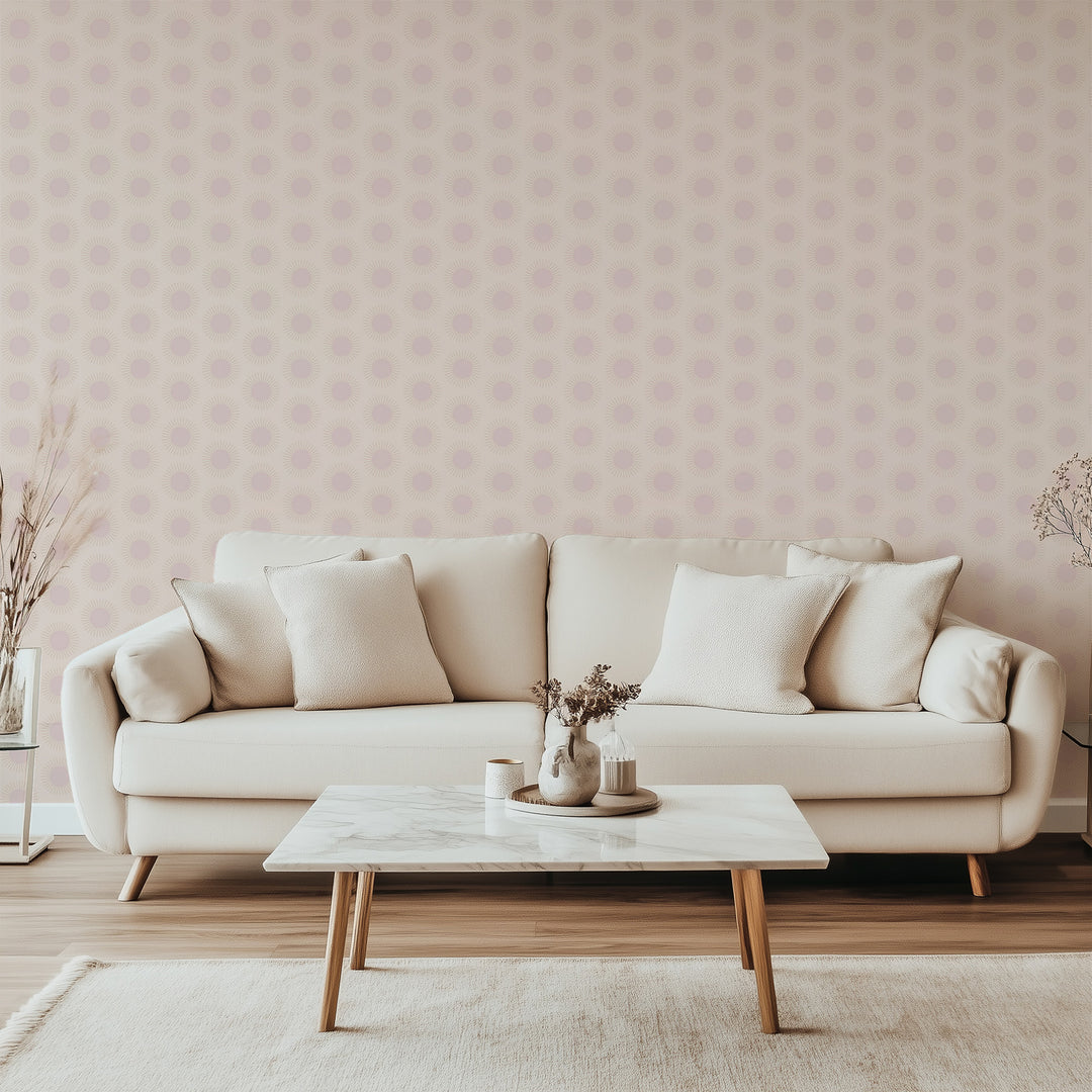 Sunburst enhances the aesthetics of any room by merging elemental simplicity with traditional design elements. Comprised of clean circles offset by slender, radiating lines, this wallpaper goes beyond basic decor to capture the quintessential spirit of solar motifs.