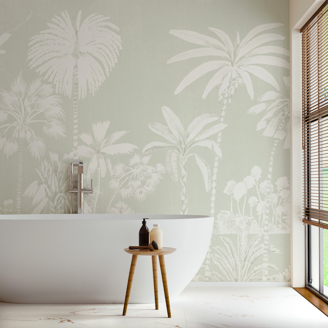 Our Charleston Marsh Mural, in collaboration with Megan Molten, captures the serene beauty of the South Carolina coast, featuring delicate motifs of palm trees, coastal flowers, and graceful birds. Rendered in a palette of muted colors—soft blues, gentle greens, and sandy beiges—it evokes the tranquil atmosphere of seaside living. The intricate patterns flow seamlessly, creating a sense of depth and movement. Ideal for adding a touch of elegance and coastal charm to any space, this wallpaper invites a serene escape into nature.