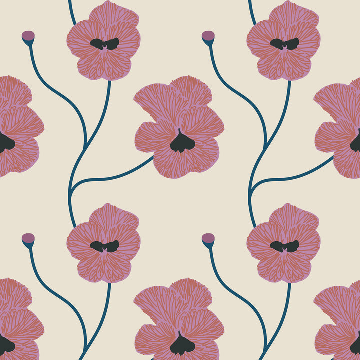 Flourish - Fuchsia Linen Floral Wallpaper by Natalie Papier
