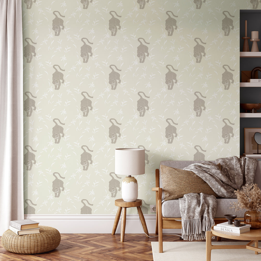 Derived from the captivating aesthetics of Tibetan tiger rugs, the "Stalking Tiger" wallpaper pattern showcases a striking block print design of tigers and grassland motifs, exuding a wild yet refined beauty. Since 2017, this pattern has been a top-selling sensation at Mitchell Black, adding a bold and stylish touch to a variety of settings. Try out this mesmerizing design and elevate your space to new heights with the "Stalking Tiger" wallpaper pattern.