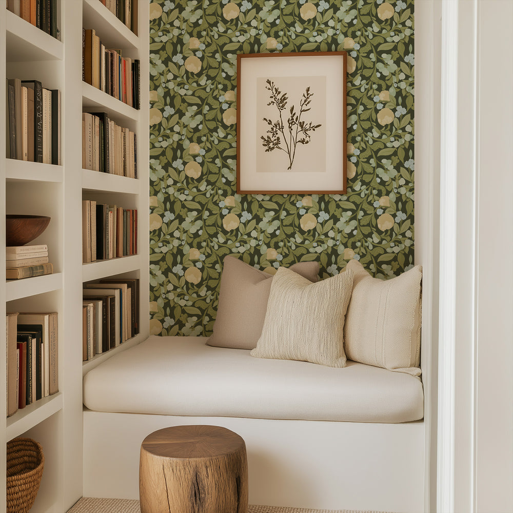 Budding Grove - Deep Olive Floral Wallpaper
