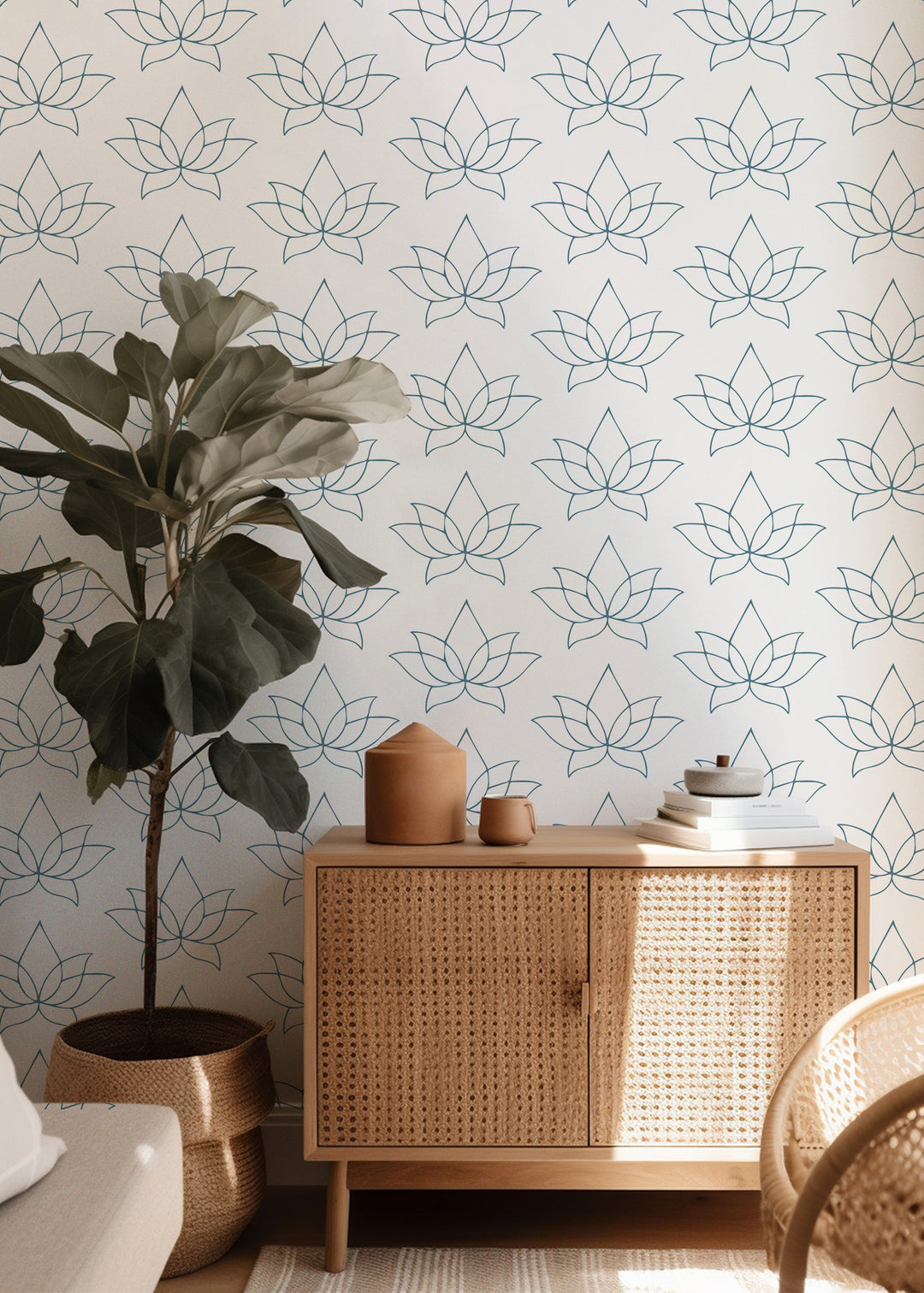 Lotus - Dusty Blue Floral Wallpaper by Bohemian Bungalow