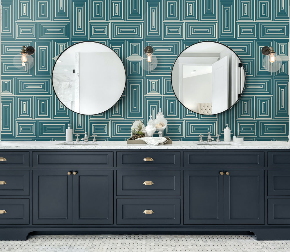 Nia - Teal Geometric Wallpaper by Forbes Masters