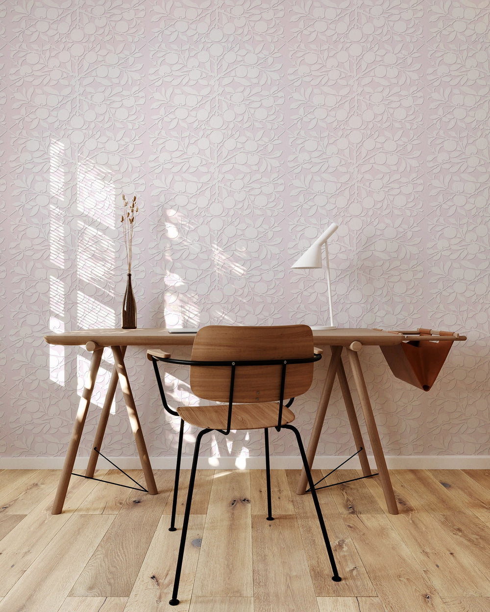 Peach on the Vine - Silver, from The Mitchell Black Signature Wallpaper Collection, was designed by our in-house artists to bring both traditional and modern design into the trendy home. Our wallcoverings are designed for the ease of use that previous generations of wallpaper lacked; made with high-quality paper, environmentally friendly ink, and optional reposition-able backing. Our eye for style, quality materials, and customer ease sets a new standard for fine living.