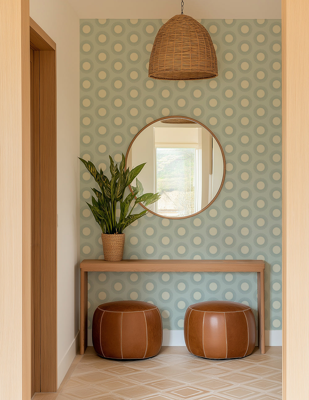 Sunburst enhances the aesthetics of any room by merging elemental simplicity with traditional design elements. Comprised of clean circles offset by slender, radiating lines, this wallpaper goes beyond basic decor to capture the quintessential spirit of solar motifs.
