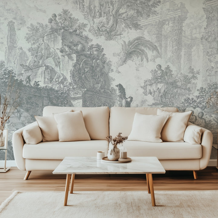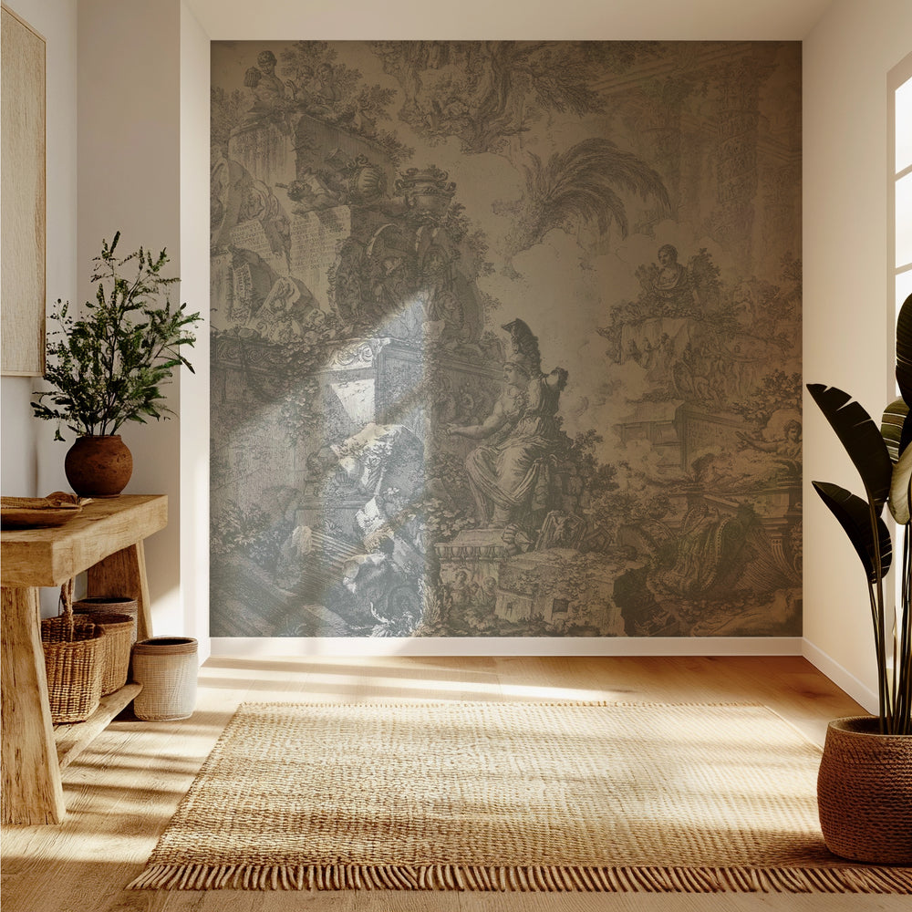 Turn your walls into a work of art with the Mild Maison Wall Mural. This neoclassical wall mural features playful and figurative designs that will add a dramatic touch to any room. Make a statement and show off your unique style with this one-of-a-kind piece.