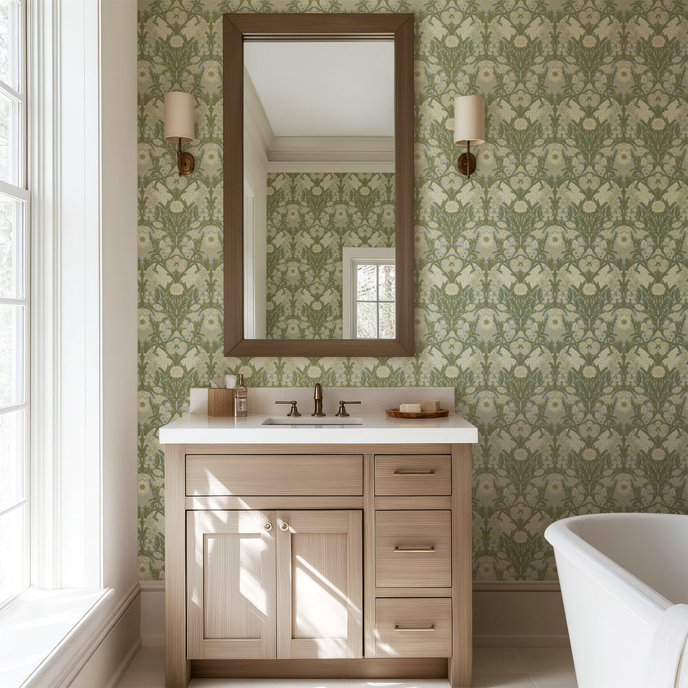 Wild Meadow is a classic Arts & Crafts pattern, rich with layered blossoms and carefully ordered abundance. Both lush and structured, it embodies the pursuit of finding beauty in the intricate patterns of the natural world. The design invites long looking, rewarding the viewer with fresh discoveries in every repeat.