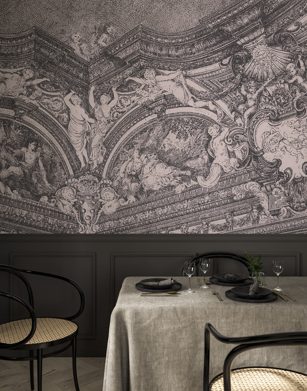 Turn your walls into a work of art with the Atlas Dome Wall Mural. This neoclassical wall mural features playful and figurative designs that will add a dramatic touch to any room. Make a statement and show off your unique style with this one-of-a-kind piece.