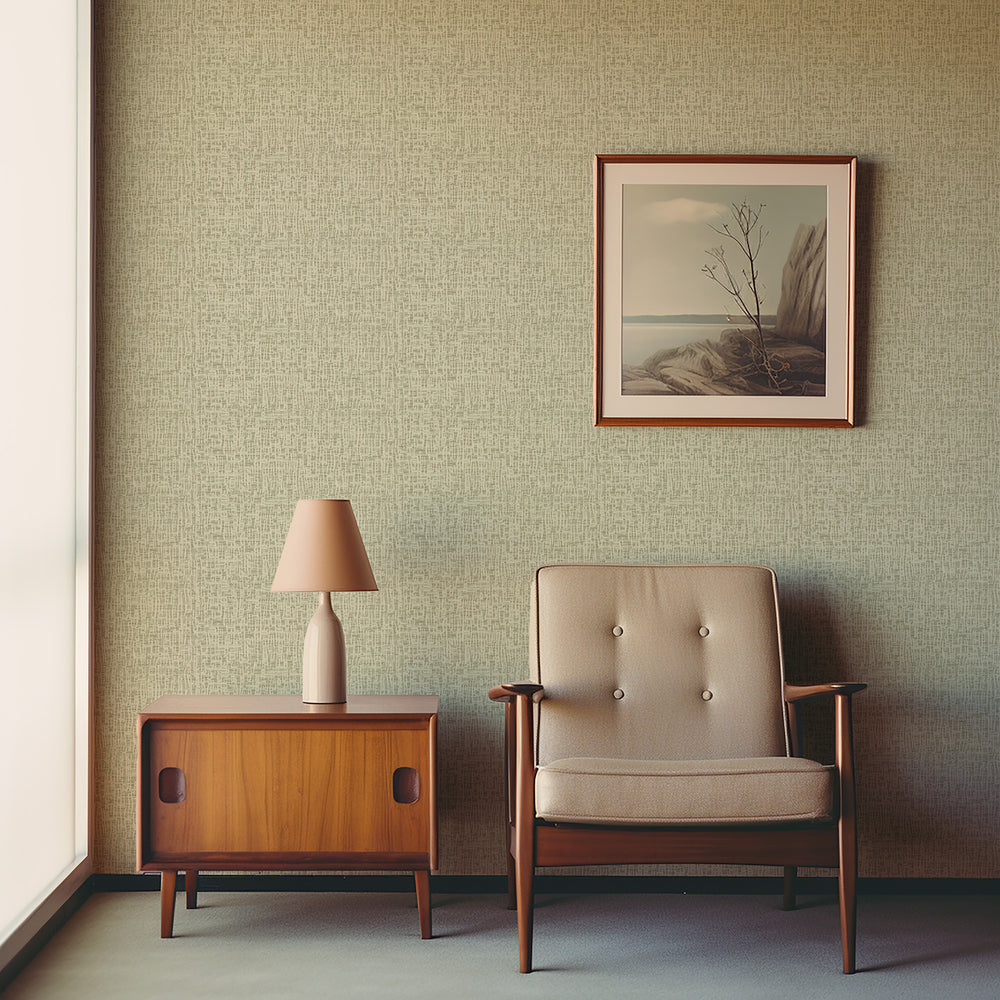 The “Atomic Weave” wallpaper pattern brings a contemporary twist to classic design elements found in vintage surface pattern books. Featuring a faux woven texture, this design captures the intricate, handcrafted feel of the past while updating it for today’s aesthetics. The grid and layered lines introduce a lively rhythm, with a color palette that fits seamlessly into both modern lofts and retro-inspired interiors.