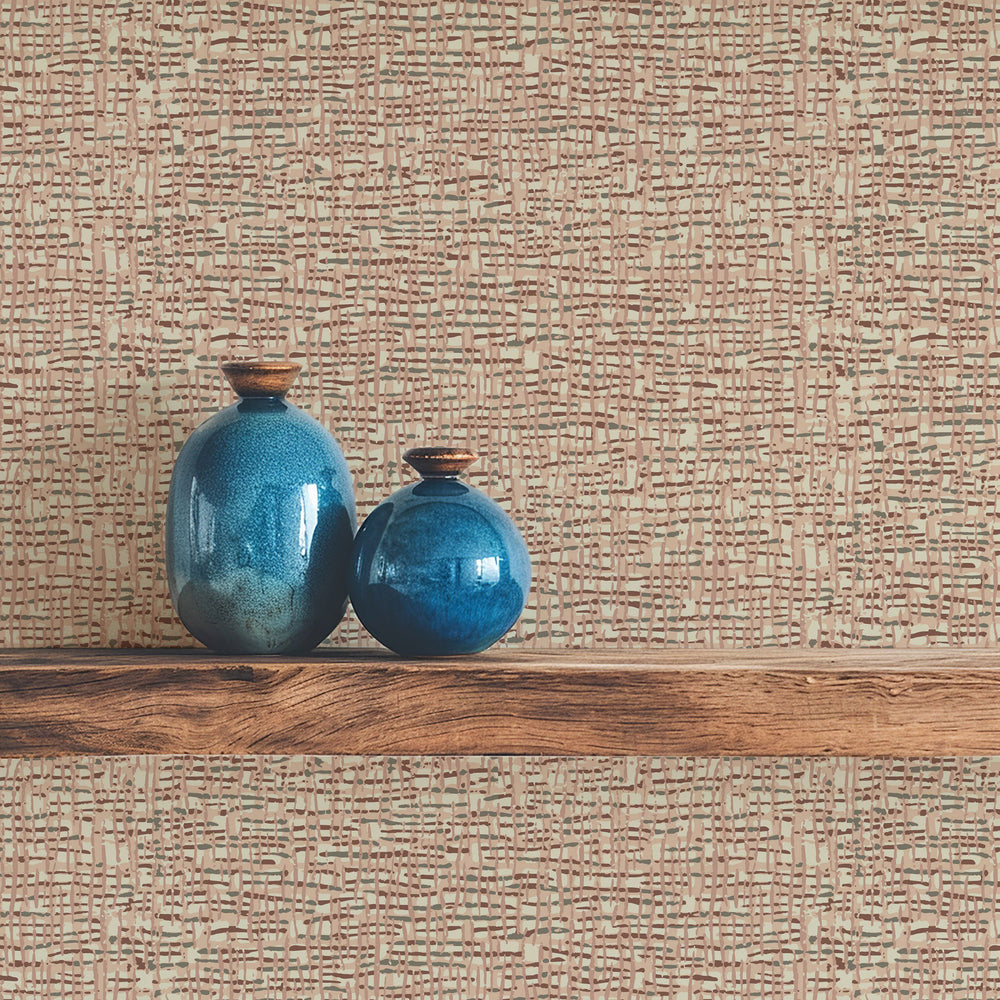The “Atomic Weave” wallpaper pattern brings a contemporary twist to classic design elements found in vintage surface pattern books. Featuring a faux woven texture, this design captures the intricate, handcrafted feel of the past while updating it for today’s aesthetics. The grid and layered lines introduce a lively rhythm, with a color palette that fits seamlessly into both modern lofts and retro-inspired interiors.