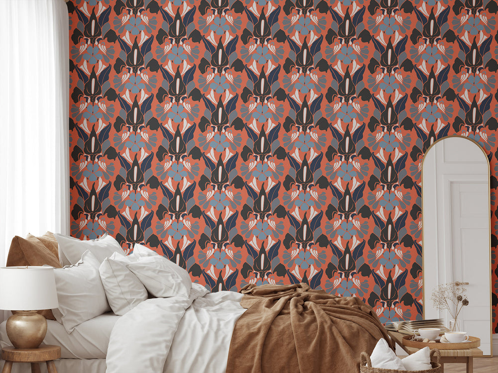 Dragon Flower - Red Smoke Floral Wallpaper